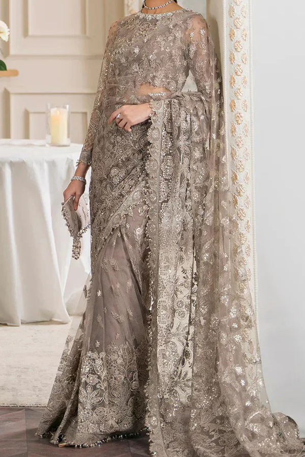 Baroque Chantelle Embroidered Luxury Net Saree 3 Piece Stitched